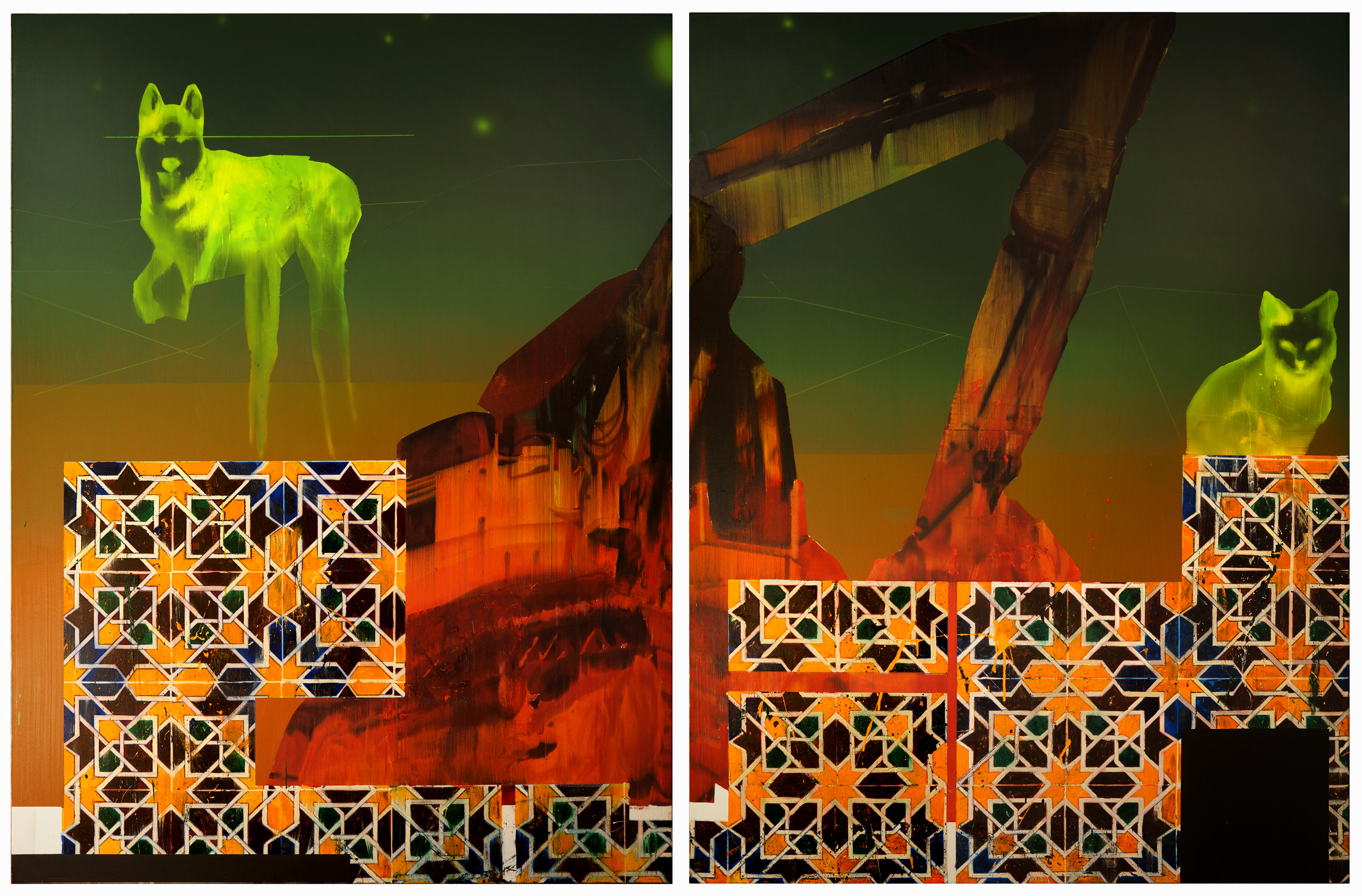 Previous ImageNext Image Hédy Gobaa, Restes à l’écart, 2021, huile sur toile, 160 x 122 cm et 160 x 122 cm