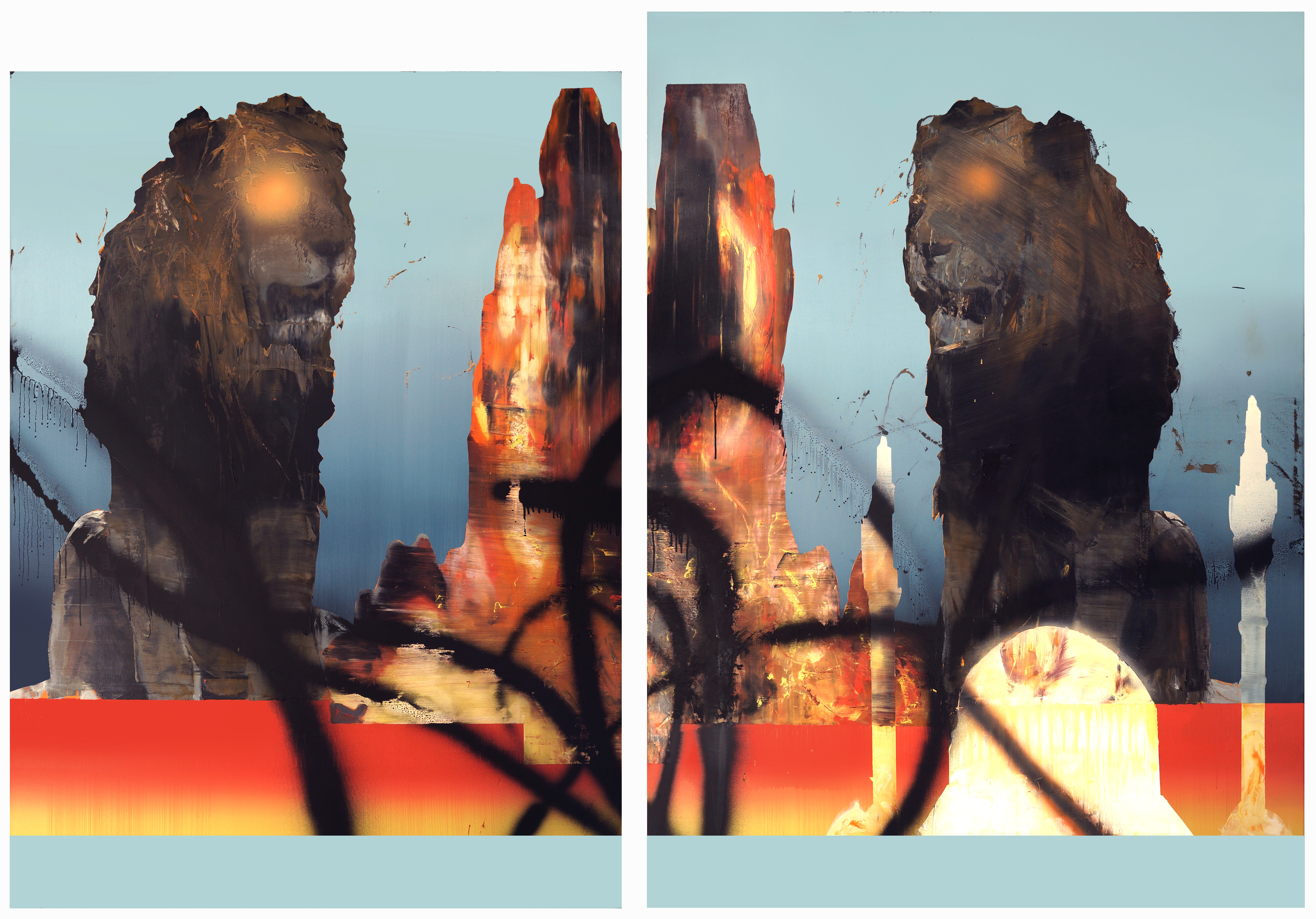 Previous ImageNext Image Hédy Gobaa, L’enfer de l’autre, 2021, huile sur toile, 162 x 122 cm et 177 x 132 cm