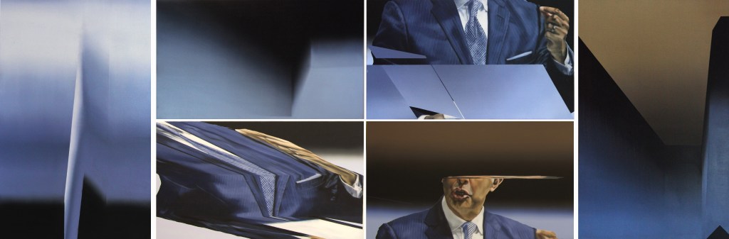huile sur toile, 6 éléments, 126 x 370 cm