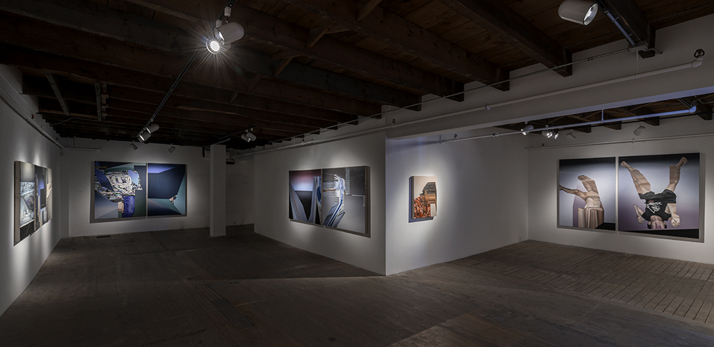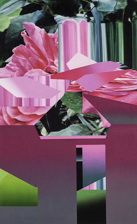 Ce travail réalisé dans le cadre de ma recherche doctorale s’appuie sur une pratique initiée longtemps avant sa théorisation. Il a conduit à la conceptualisation du statut pseudo-subjectif d’un geste à la fois réalisé par la peinture et le logiciel : homothétie, découpage, allongement, remplissage, choix de couleur, etc., qui aboutissent à des dislocations, des déformations, des échappées de matérialité. La matérialité paradoxale devient lumière, parfois couleur pure.