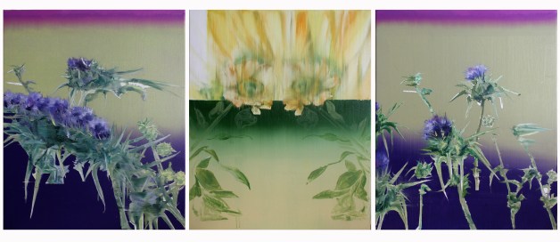 Previous ImageNext Image Champ 1 (chardon, marguerite), 2018, huile sur toile, 3 élément de 50 x 60 cm ch.